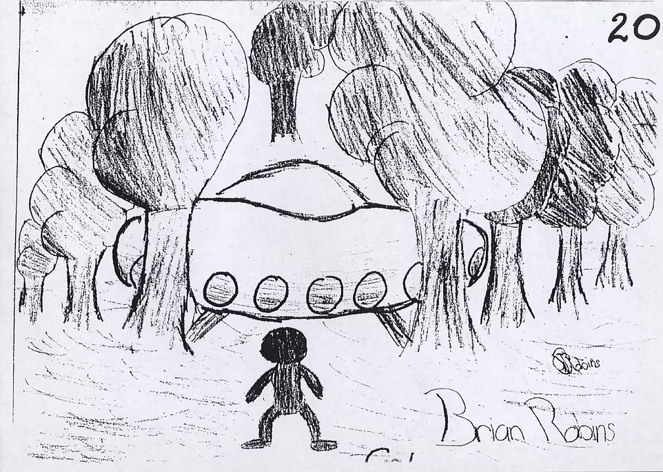 Se cree que alrededor de 62 niños de entre seis y 12 años dieron relatos similares de lo que sucedió ese día, diciendo que vieron al menos uno o varios OVNIs junto con una figura extraterrestre.