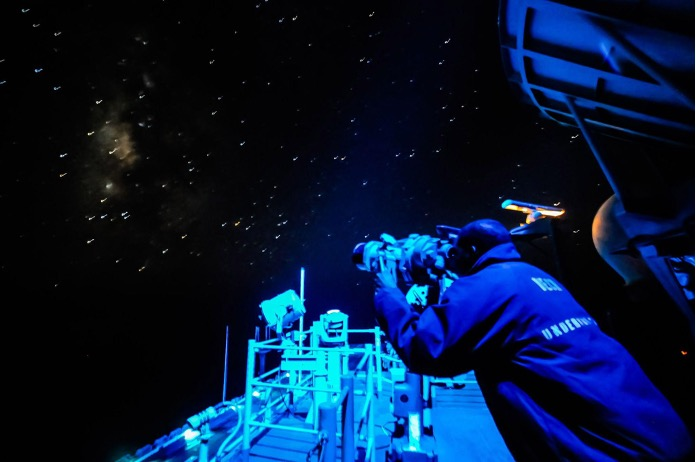 En la noche del encuentro con el UAP, dice que se le asignó vigilancia desde las 8:00 p. m. hasta las 12:00 a. m., y la primera vez que observó el objeto fue desde la estación de vigilancia de estribor en la pasarela de la isla. Él dice que se atenderían hasta 10 posiciones de vigilancia durante ese período y rotarían las posiciones cada hora.