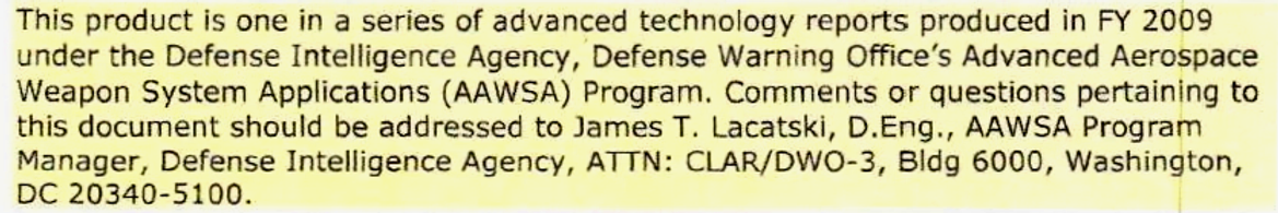 Increíblemente, fue el Dr. James Lacatski quien aprobó los documentos técnicos recibidos en respuesta a mi solicitud de la FOIA para el análisis de escombros OVNI. La DIA había redactado su nombre, pero ahora se sabe que él fue el revisor/aprobador de los informes del estudio, los mismos informes que la DIA envió a este autor en respuesta a una solicitud de documentos de análisis de escombros OVNI.