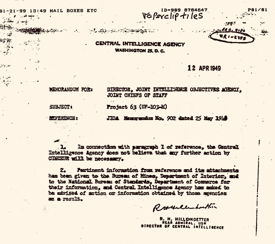 Documento compartido por Tom DeLonge: Los lectores deben tener en cuenta que el 'Proyecto 63' fue otra variante del programa 'Paperclip' para llevar a los científicos nazis a Estados Unidos. |