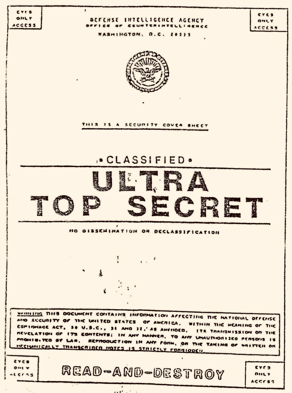 Tres meses después del incidente OVNI de Roswell en julio de 1947, Estados Unidos promulgó la Ley de Seguridad Nacional de 1947, que separó la Fuerza Aérea del Ejército, estableció la Agencia Central de Inteligencia (CIA) y reestructuró el marco de defensa e inteligencia del país. Durante la Segunda Guerra Mundial, no hubo CIA. La Oficina de Servicios Estratégicos (OSS) fue la principal agencia de inteligencia estadounidense. Liderada por "Wild" Bill Donovan, la OSS recopiló inteligencia, realizó sabotajes y supervisó operaciones especiales en todo el mundo. Antes de unirse a la OSS, el servicio de Donovan en la Primera Guerra Mundial incluyó un tiempo como comandante de batallón en el 165.º Regimiento de Infantería, donde recibió una Medalla de Honor y una Cruz por Servicio Distinguido.
