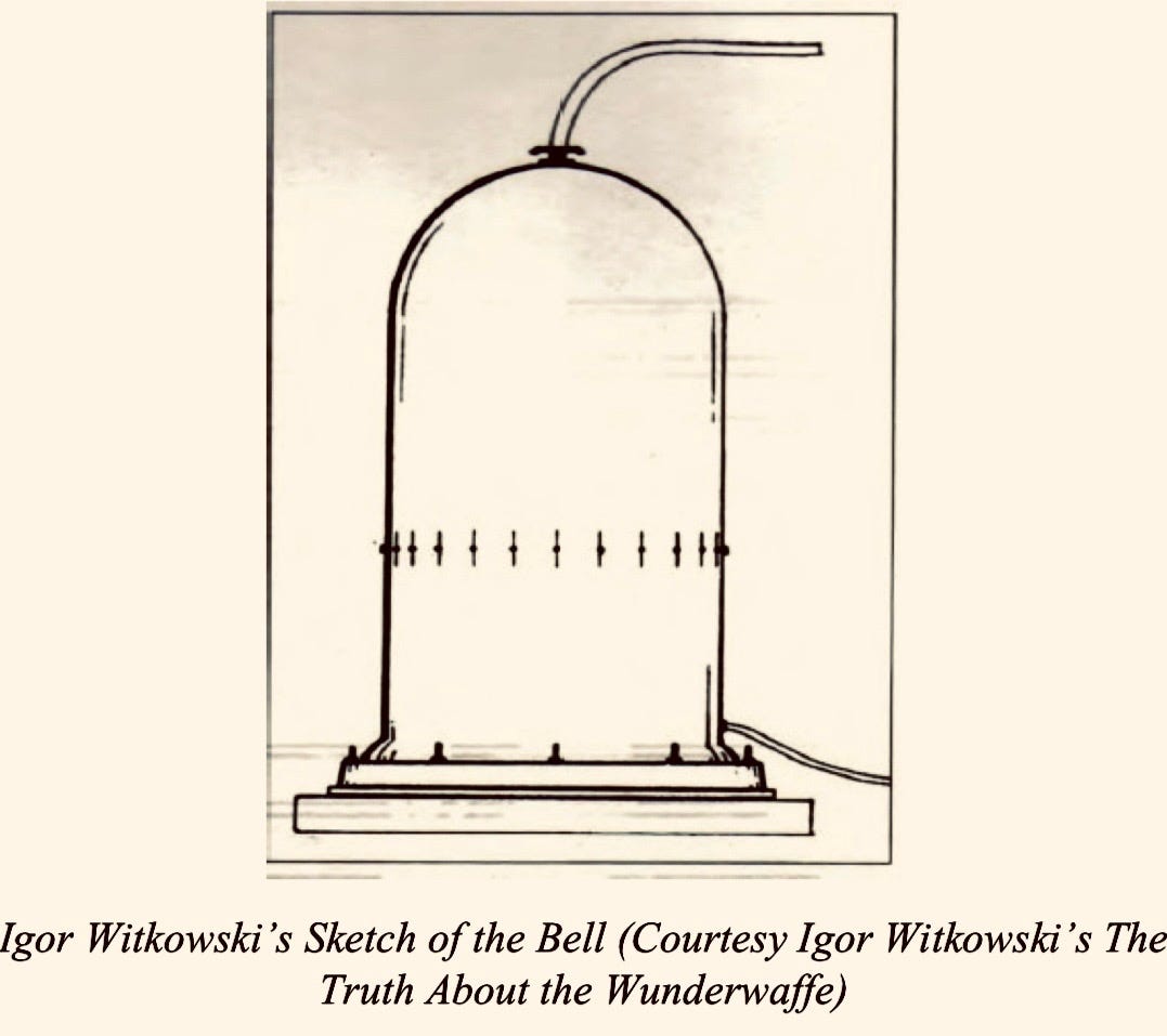 Chasing Shadows postula que la Campana era "parte de un sistema antigravedad, o su desarrollo". Un libro del año 2000 del investigador polaco Igor Witkowski, "La verdad sobre la Wunderwaffe", proporciona información más valiosa, explicando que el SS-Obergruppenführer Jacob Sporrenberg confesó haber ordenado el asesinato de unas 60 personas que tenían conocimiento del proyecto secreto. Witkowski afirmó haber tenido acceso a las transcripciones de un interrogatorio a Sporrenberg por parte de las autoridades polacas a través de un contacto anónimo en el servicio de inteligencia polaco. Sporrenberg fue una persona real. Muchos nombres reconocibles aparecen en la historia del proyecto "Campana" de Witkowski, como Kurt Debus, Wernher Von Braun y Walter Gerlach. Debus y Von Braun llegaron a ocupar puestos importantes en la NASA...