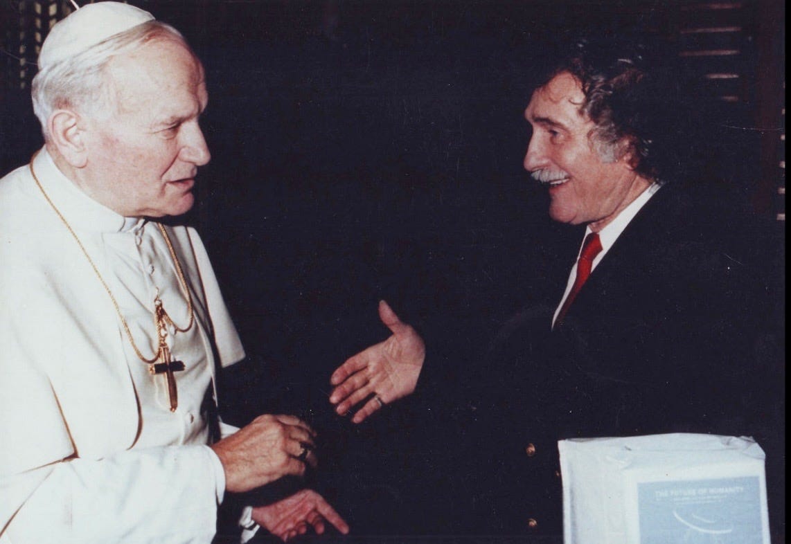 Papa Juan Pablo II (izquierda) y Dr. Andrija Puharich (derecha) |